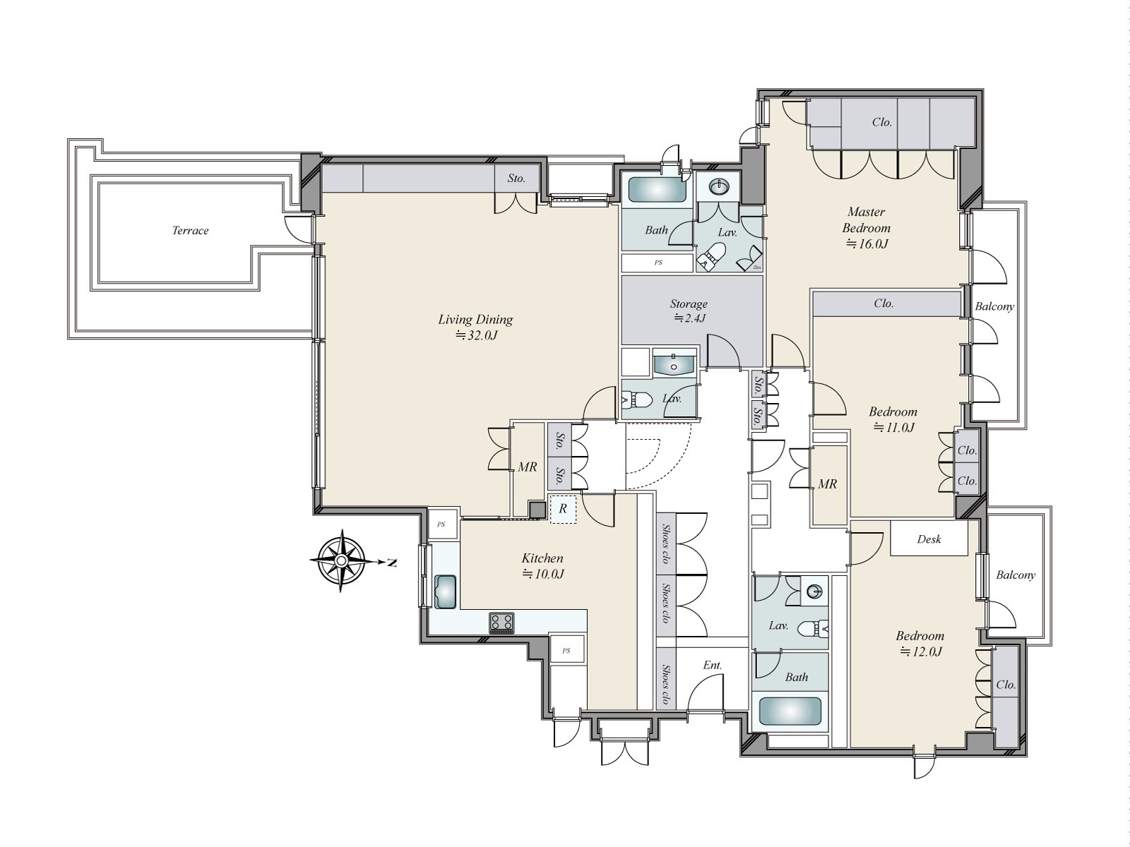 ・有约229平米的舒适的3LDK(约32张塌塌米客厅)