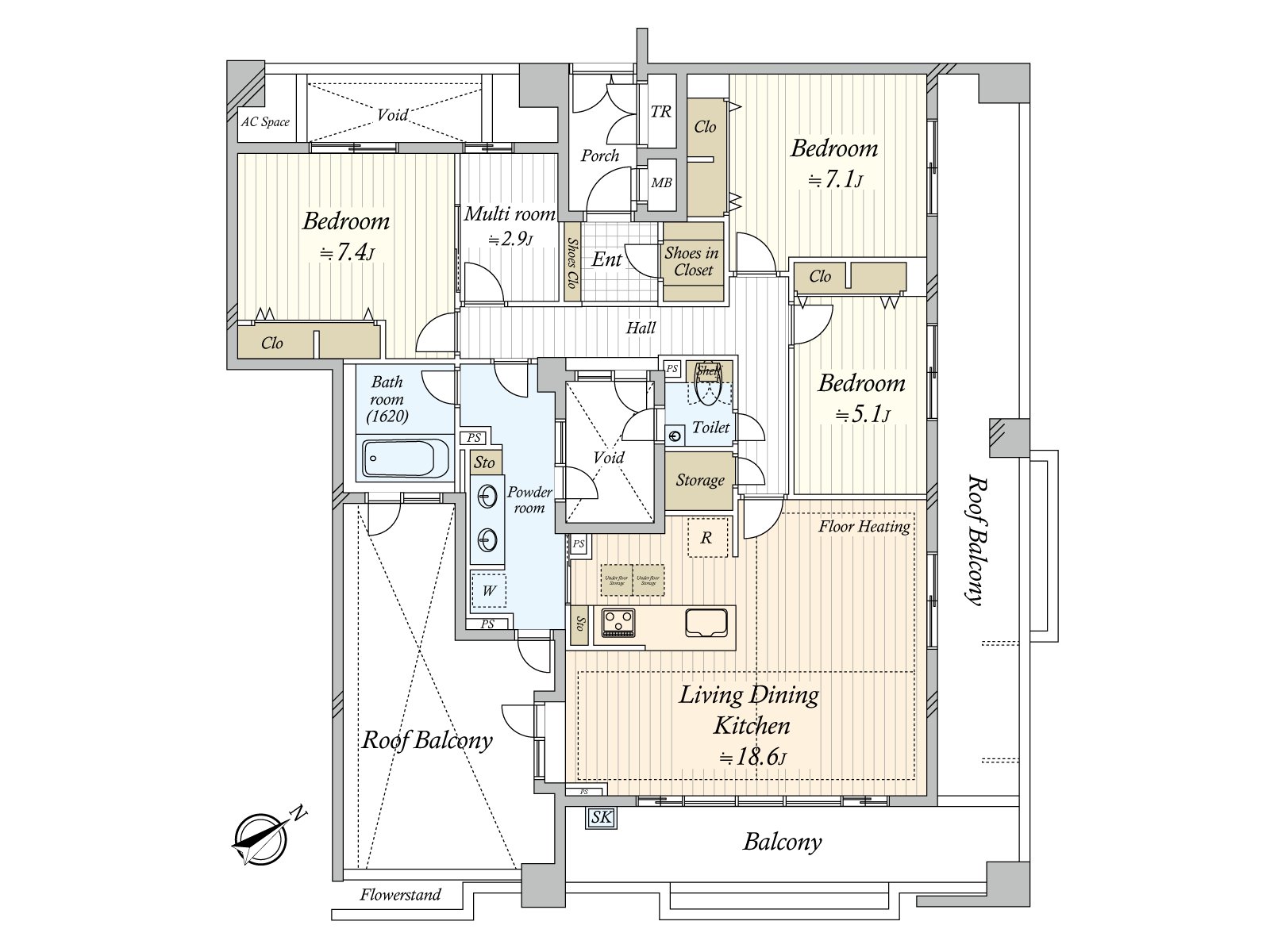 0 有实际使用面积102.4平米的舒适的3LDK的房间