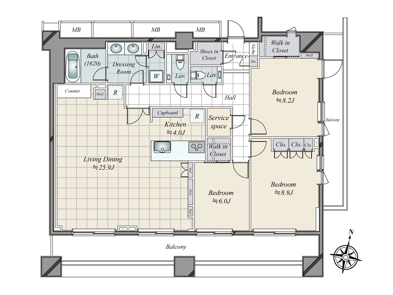・2面阳台约29平米有开放感觉