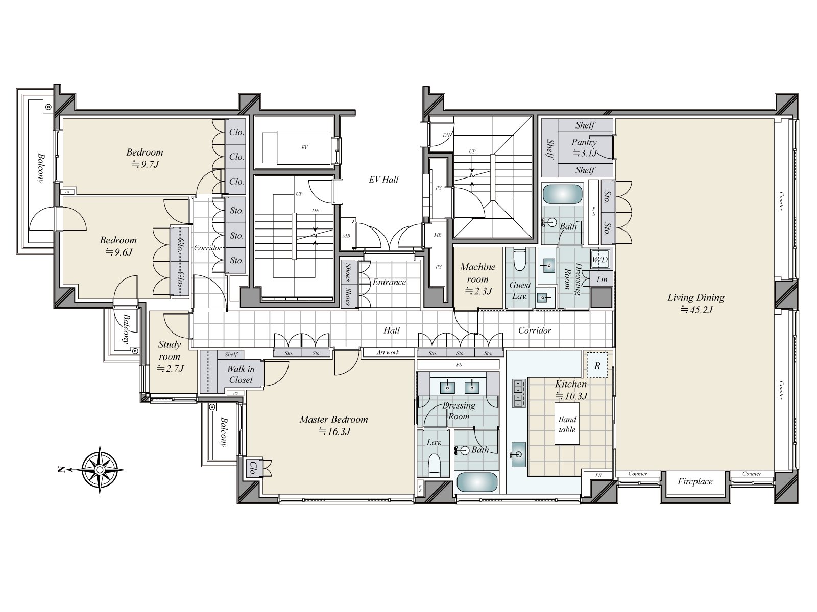 ■实际使用面积227平米的大型住戸