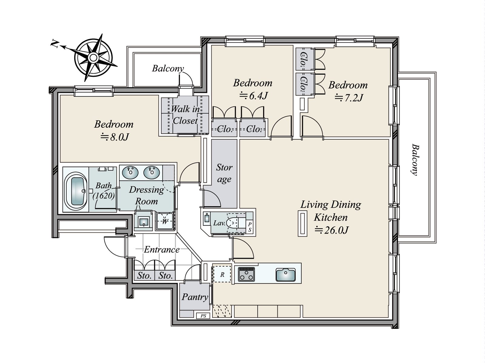 ○ 在约8.0张塌塌米西式房间,步入式衣帽间,