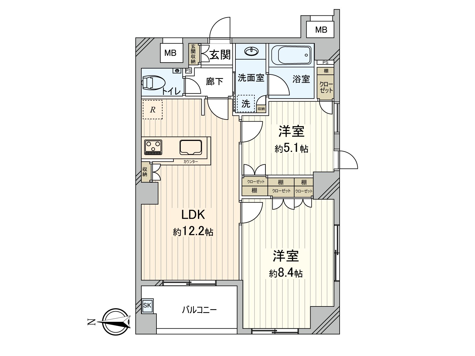 ・实际使用面积56平米的2LDK