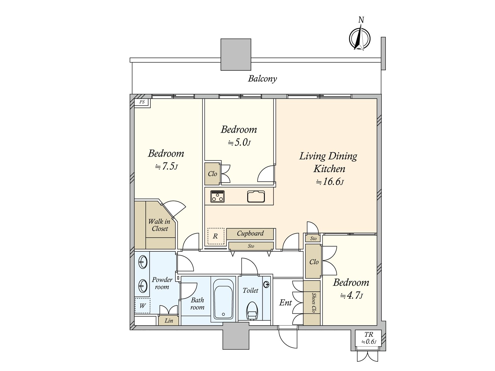 0 实际使用面积81.72平米(包括贮藏室面积1.0平米在内)3LDK