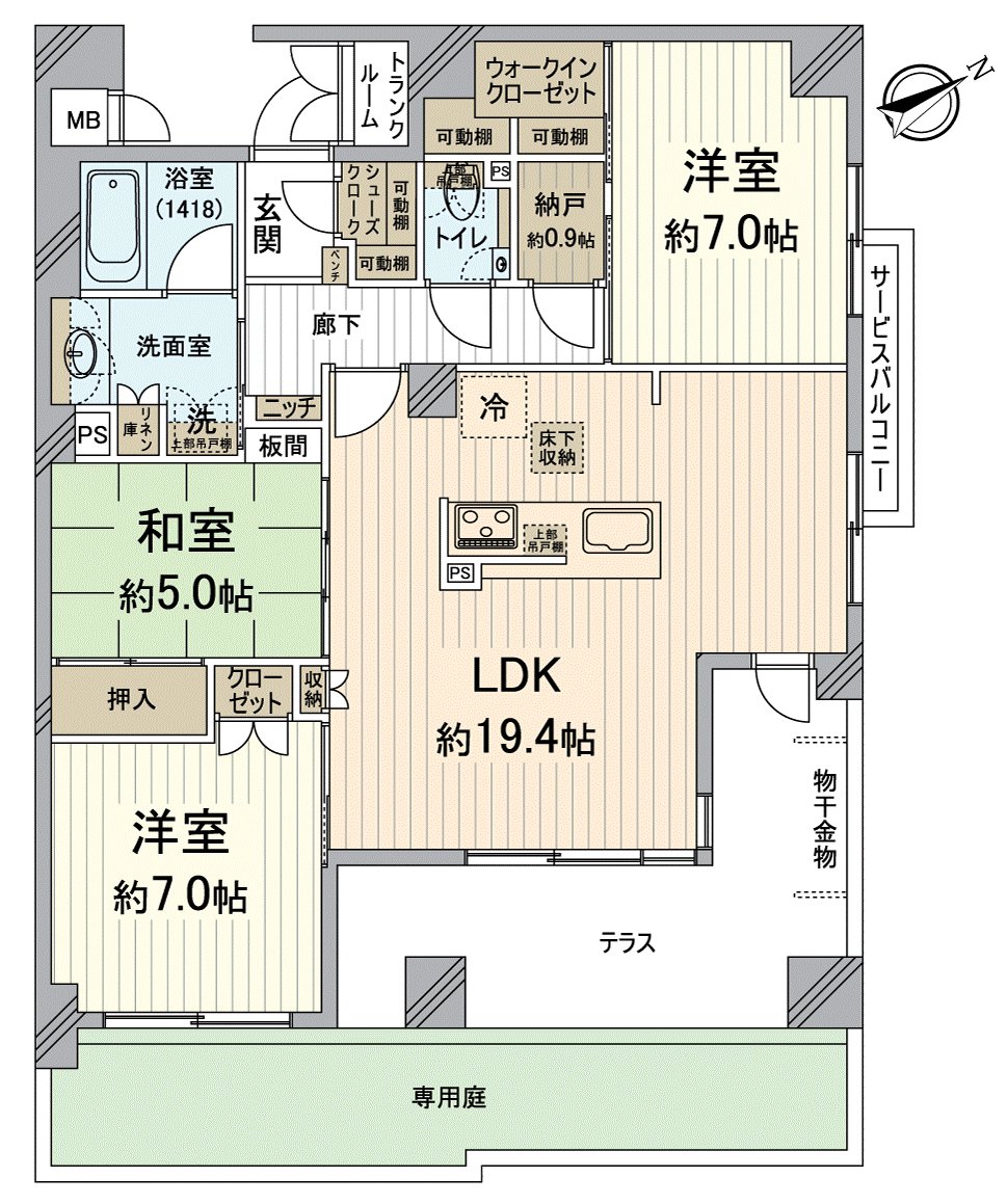 ○3LDK+步入式衣帽间+鞋衣帽寄存处+Terrace专用的院子