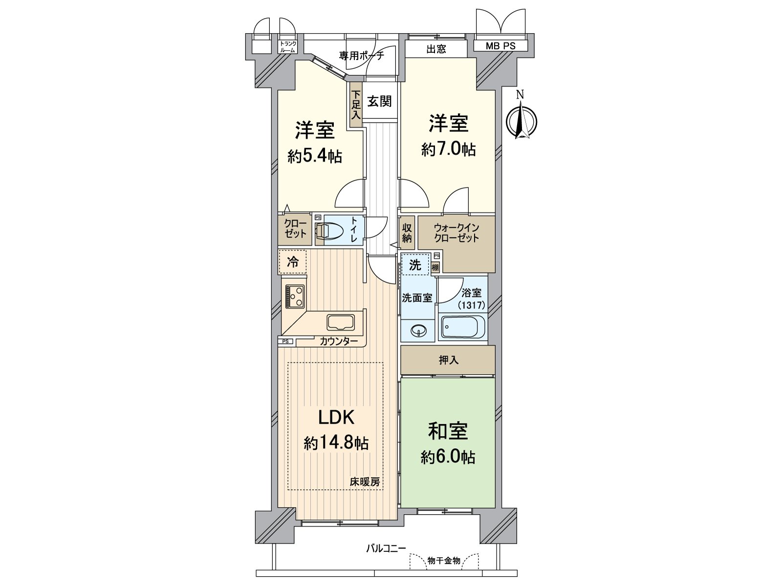 0实际使用面积73.55平米的3LDK