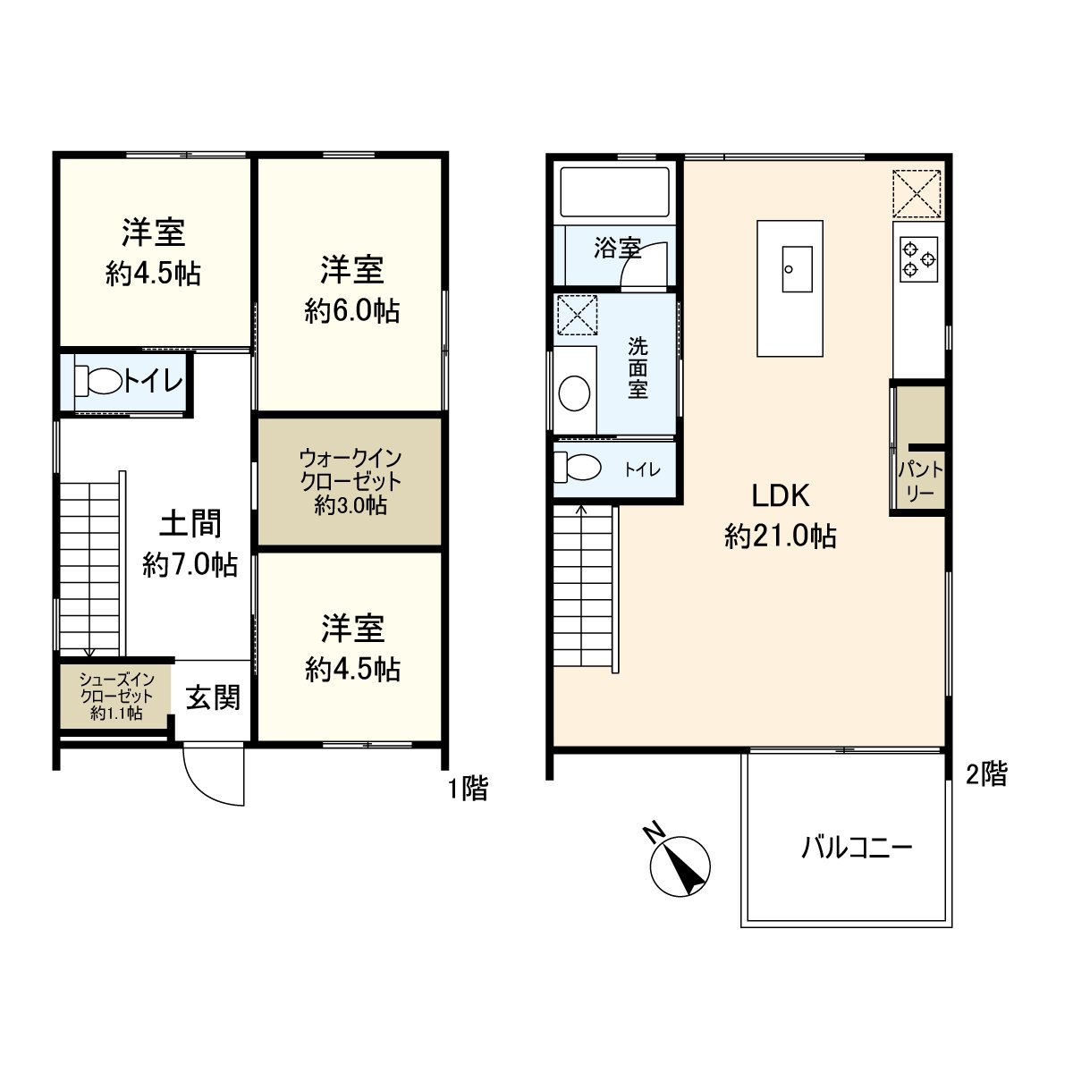 0 2楼LDK为宽敞的约21张塌塌米、斜面天花板更是开放性的空间
