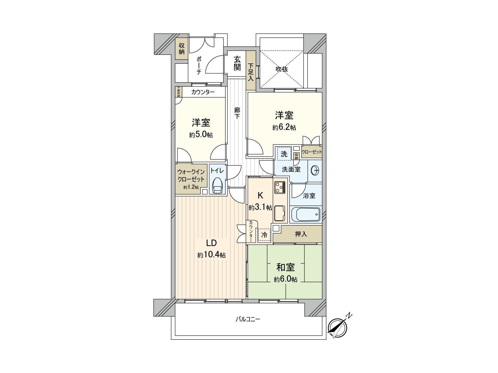 ・实际使用面积73.39平米(约22.20坪)的3LDK