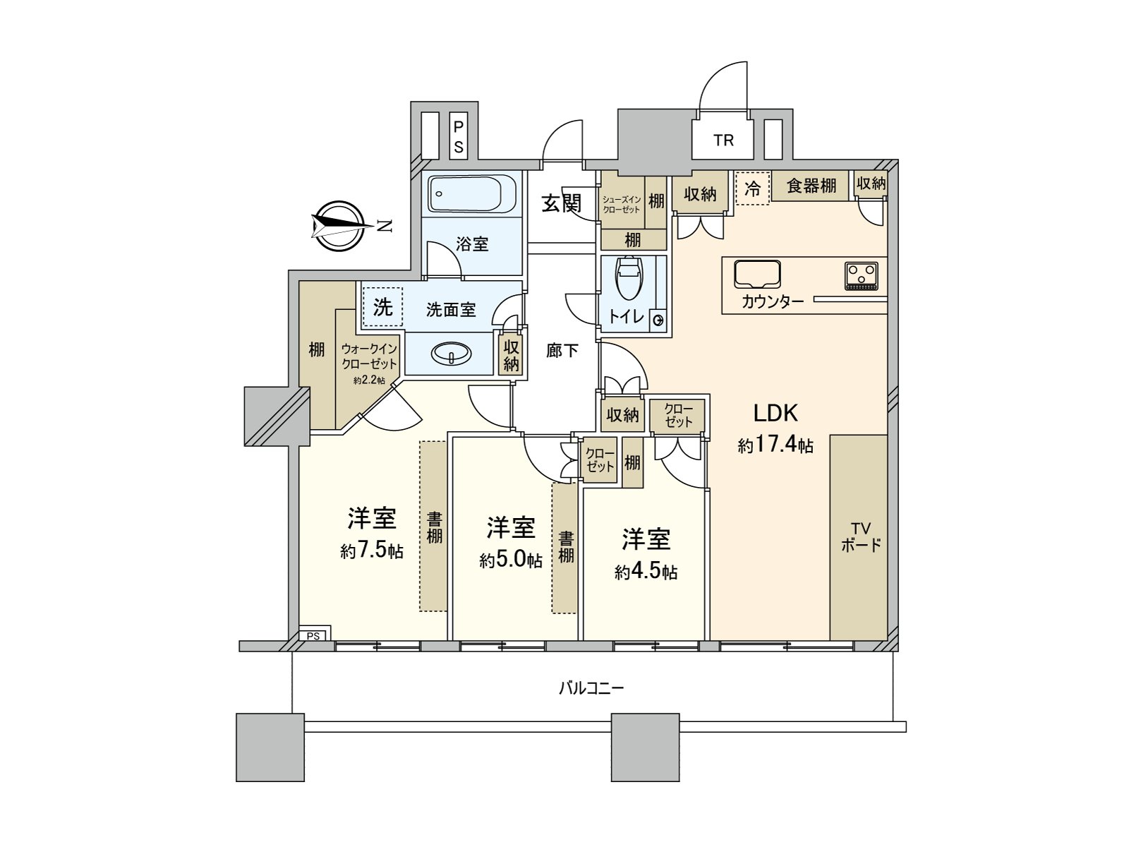 ・About 17.4 quires of living dining kitchen, maximum studding about 2.6m