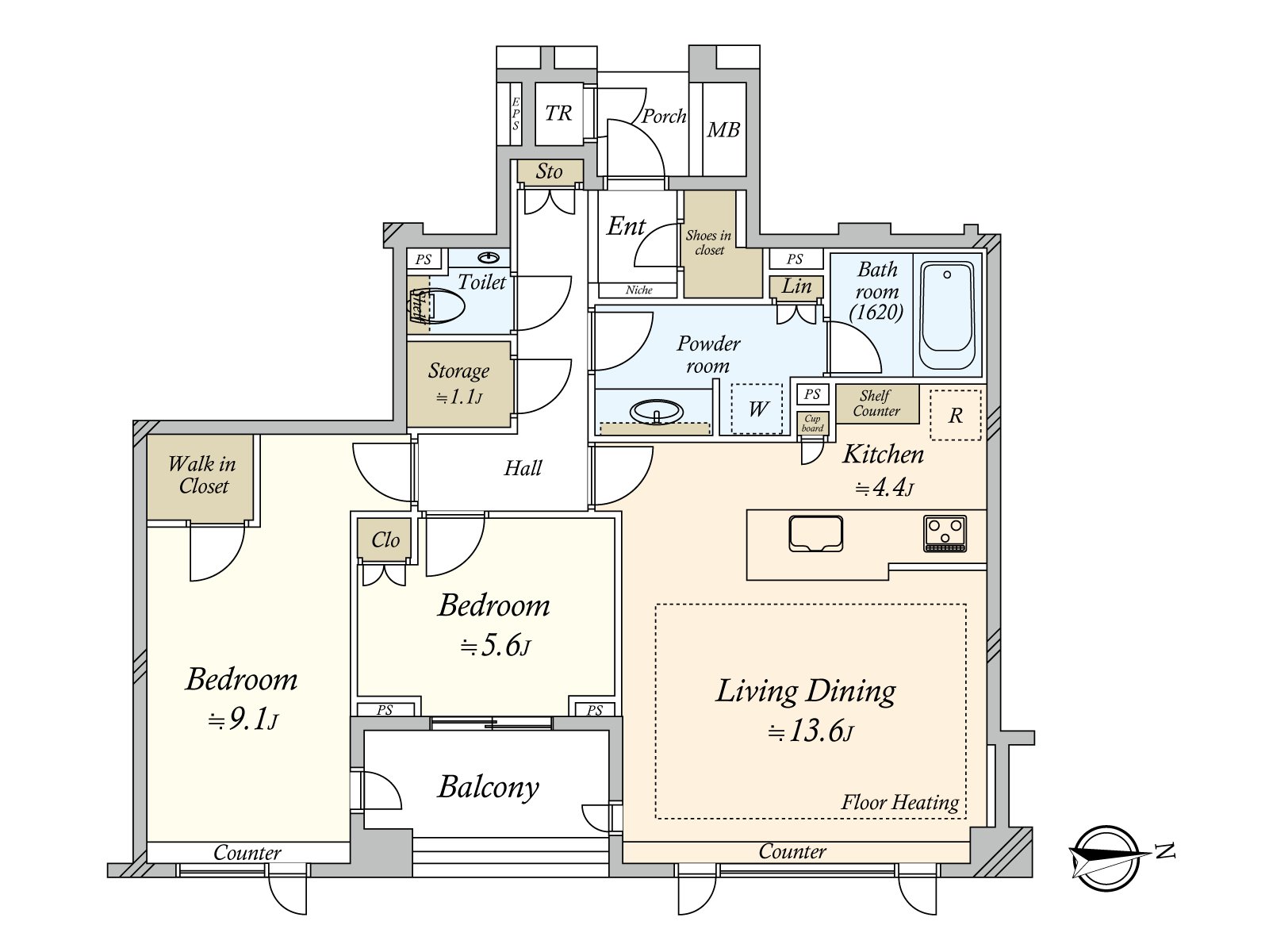 ○ 2LDK+ storeroom +WIC of 84.80 square meters of exclusive area