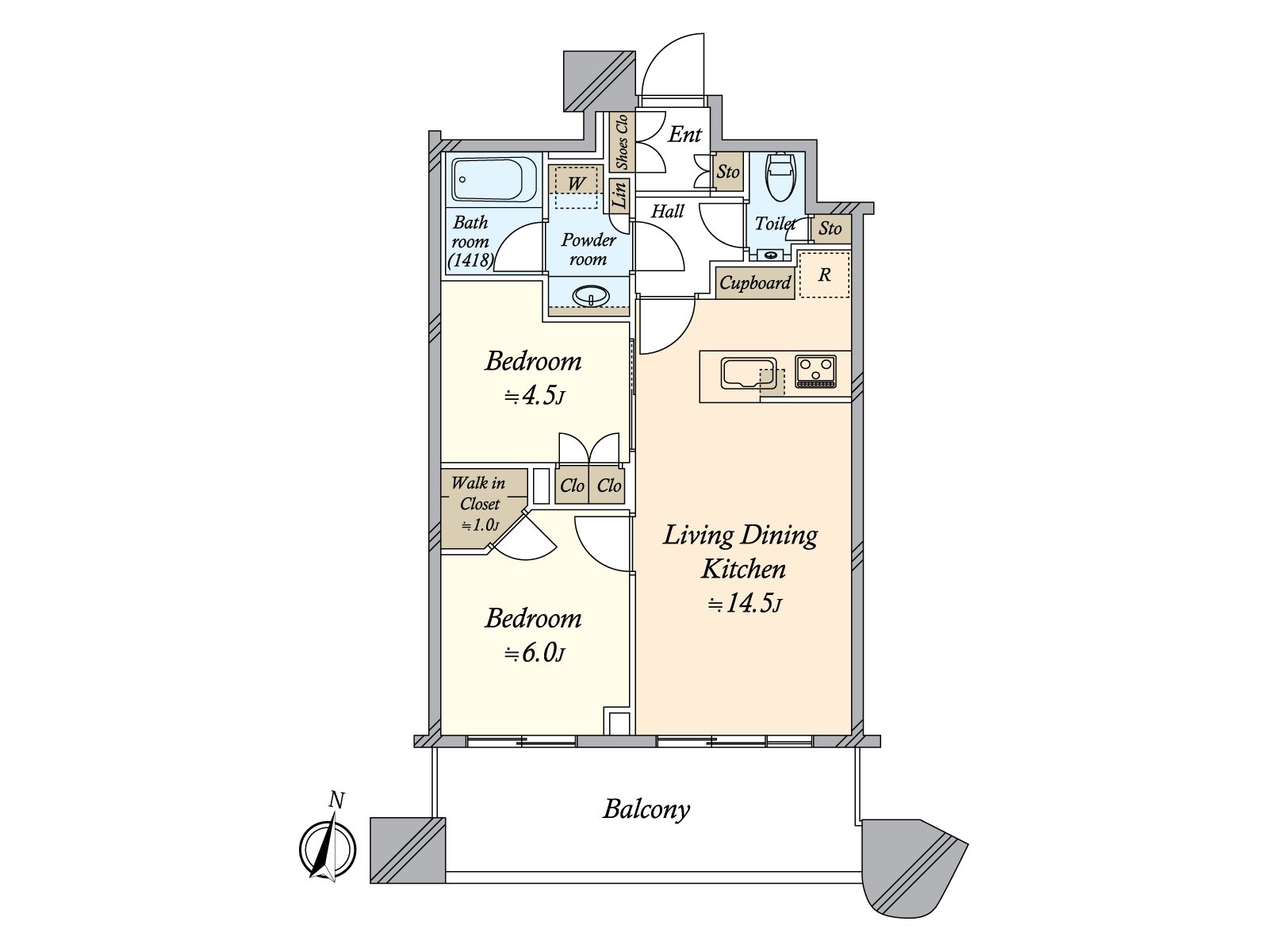 ・Plan of exclusive area 57.10 square meters 2LDK+WIC