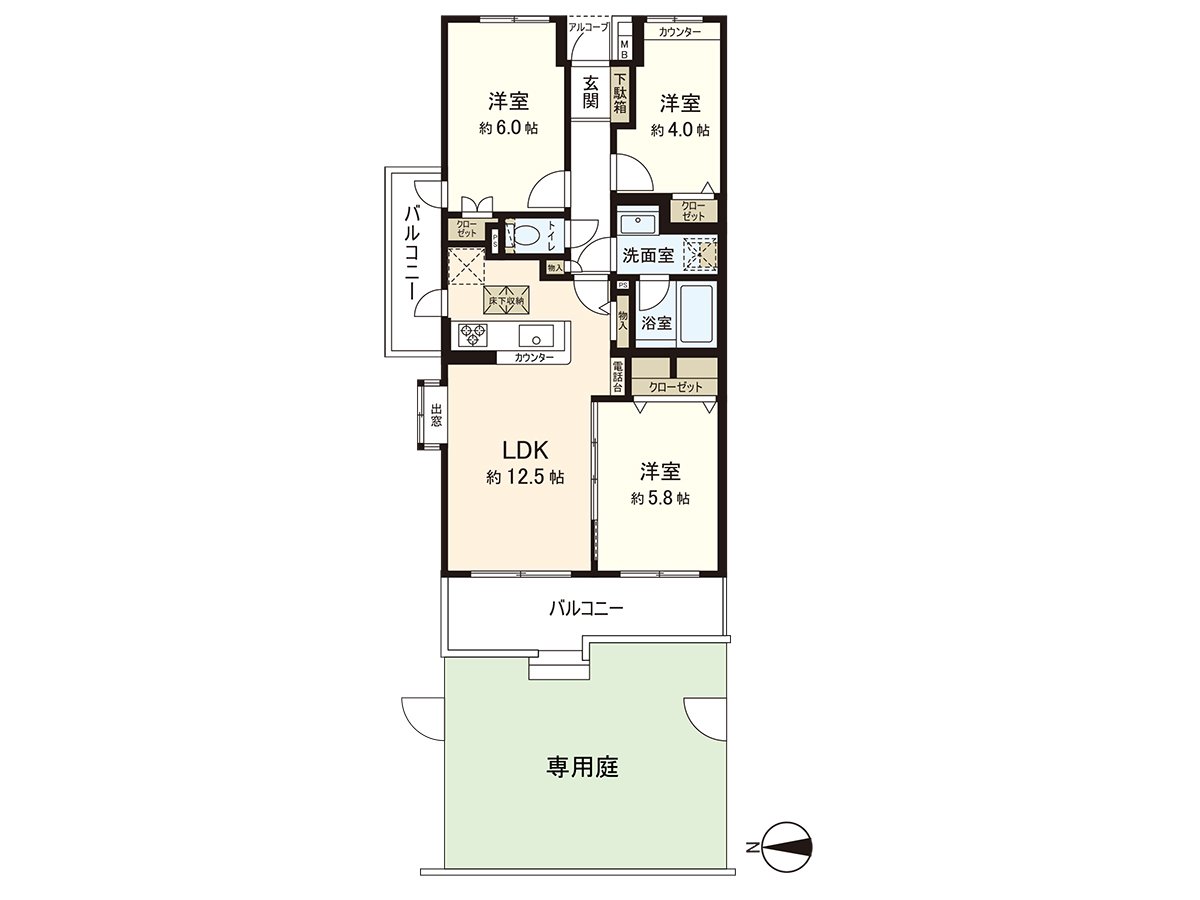 ○63.46 square meters of exclusive area (about 19.19 tsubo)