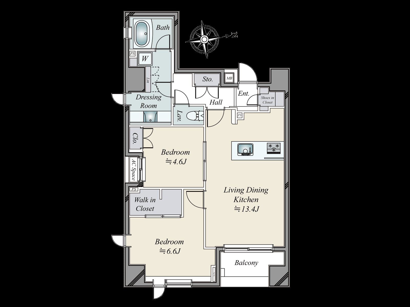 ・Exclusive area 63.34 square meters 2LDK+WIC