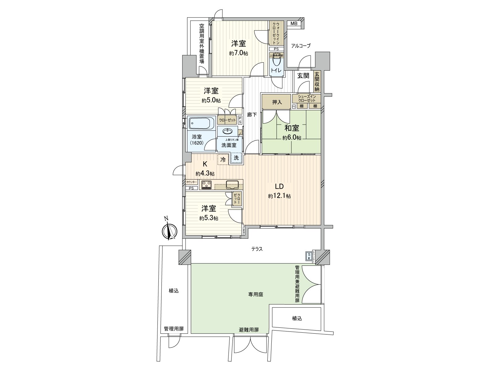 * Exclusive garden, Terrace, slop sink are with an alcove