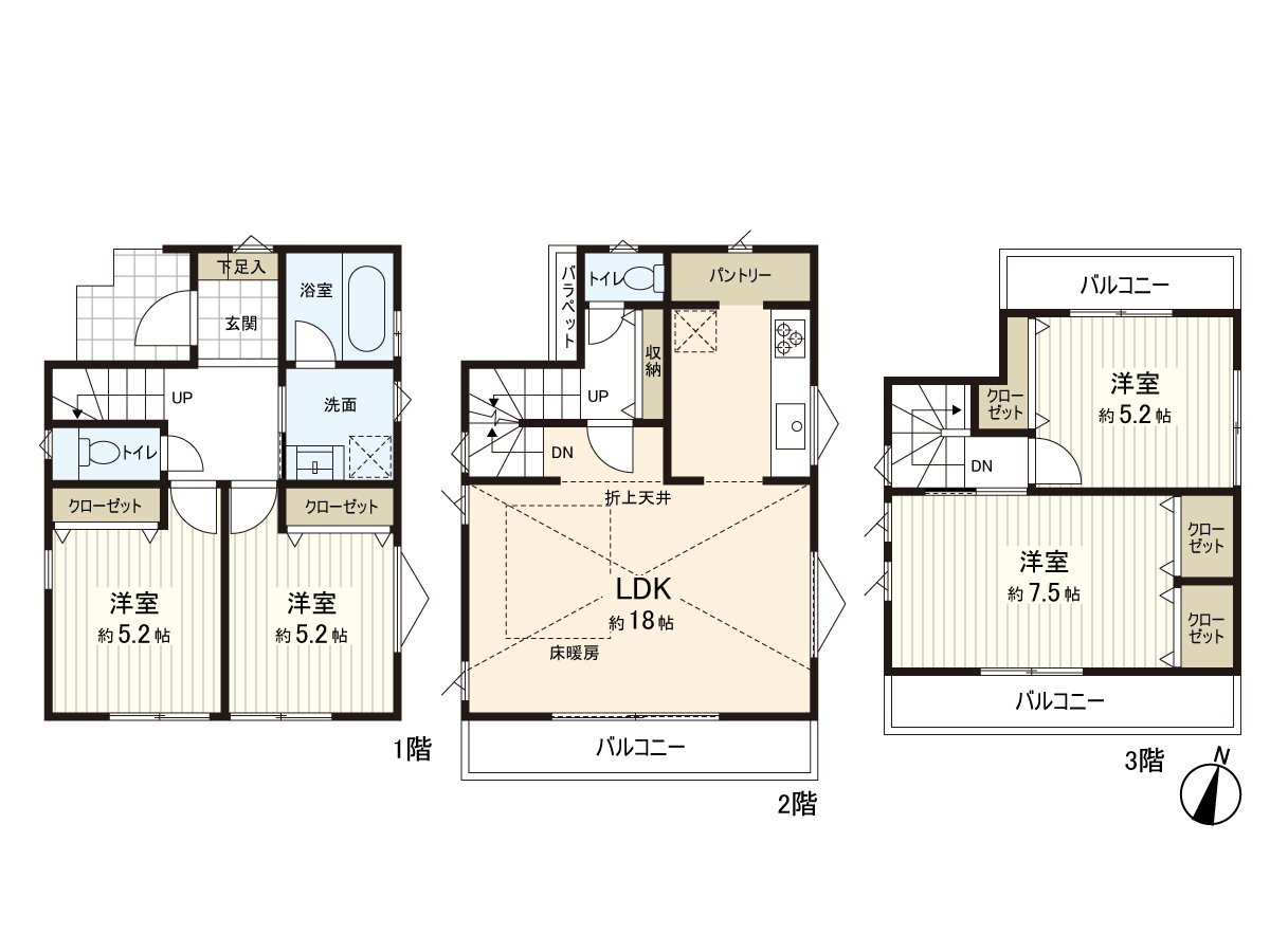 ・Wood 3-story bldg., 4LDK Newly-Built house