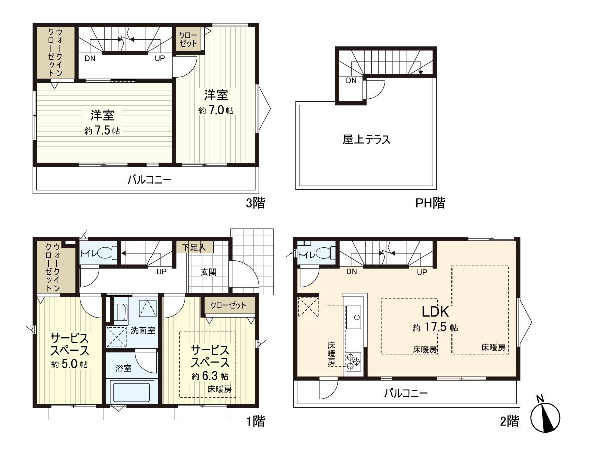 ・Gas floor heating (LDK, the first-floor service space part)