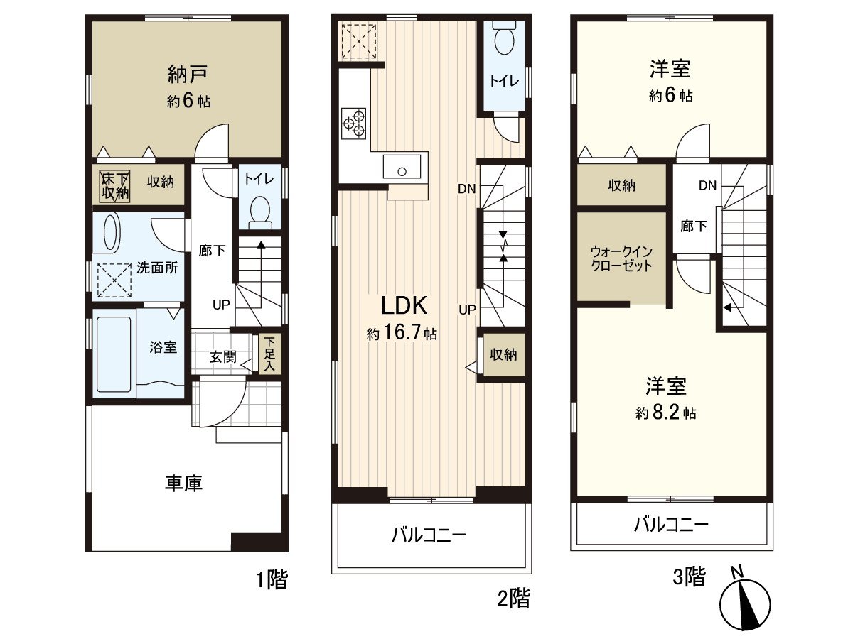 ・Wood 3-story bldg., 2LDK+S Newly-Built house