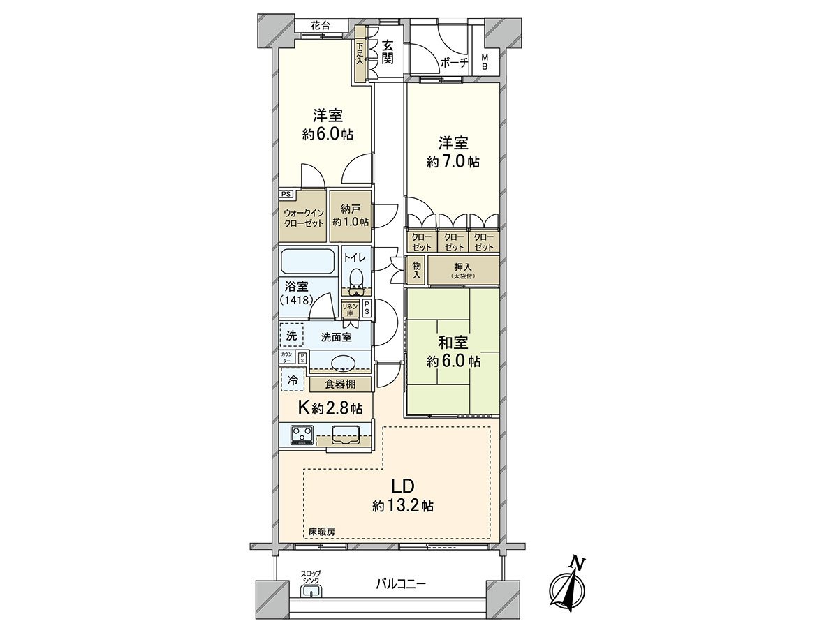 ・The 3LDK that 83.86 square meters of exclusive area was unhurried