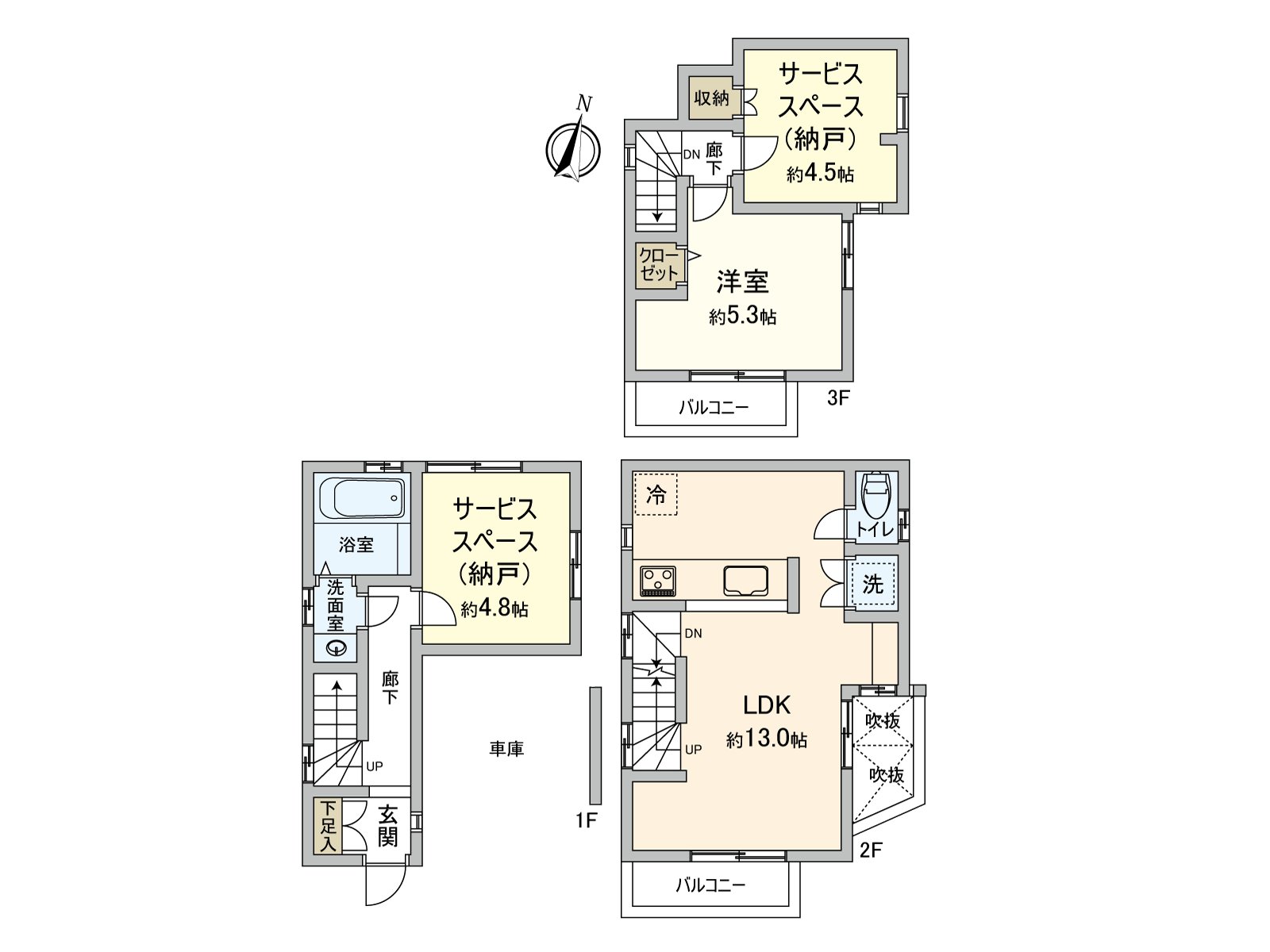 ・The service space of 1st, the 3rd floor is multipurpose, and it is available
