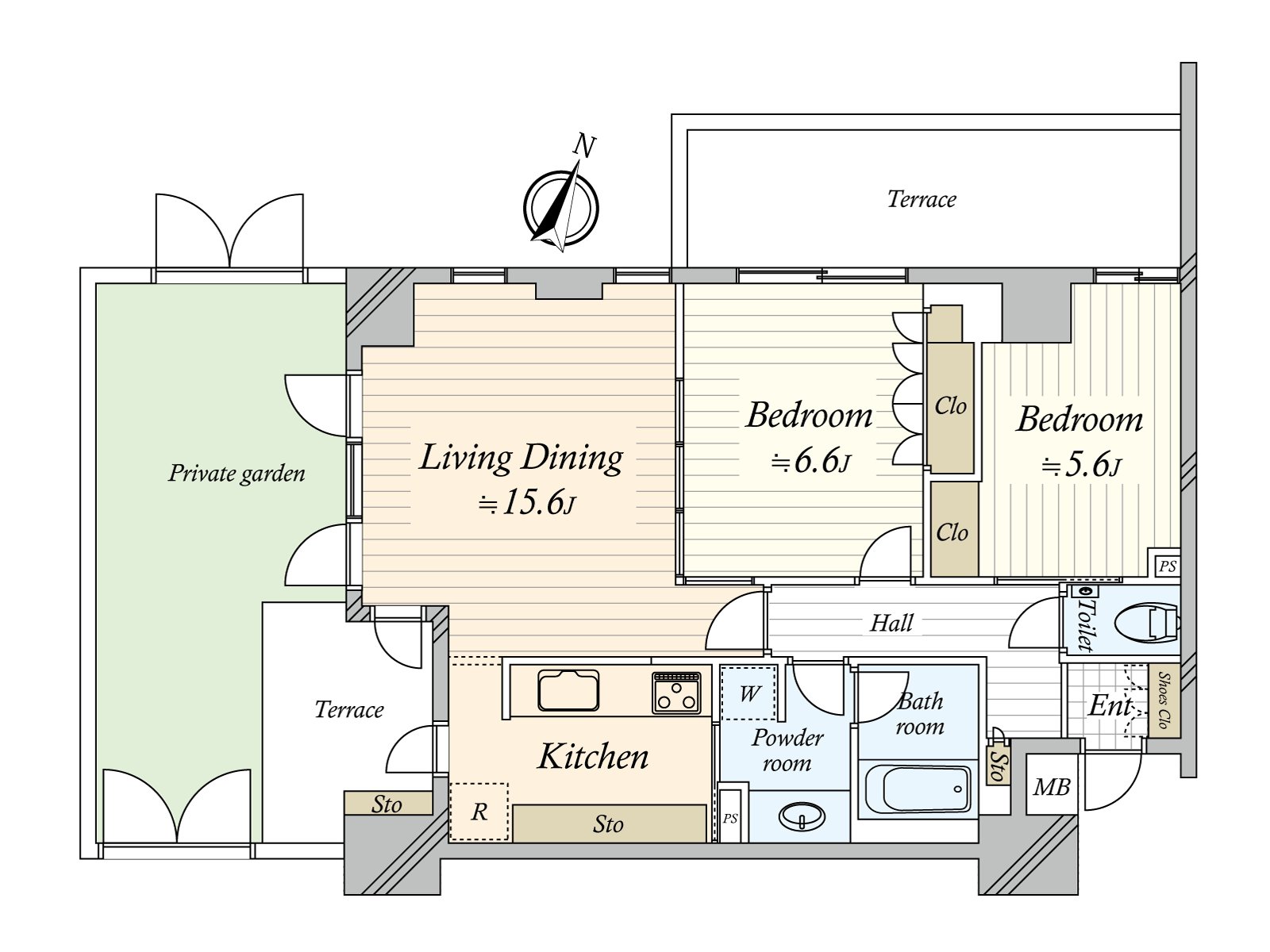 ・2LDK type of exclusive area 64.48 square meters