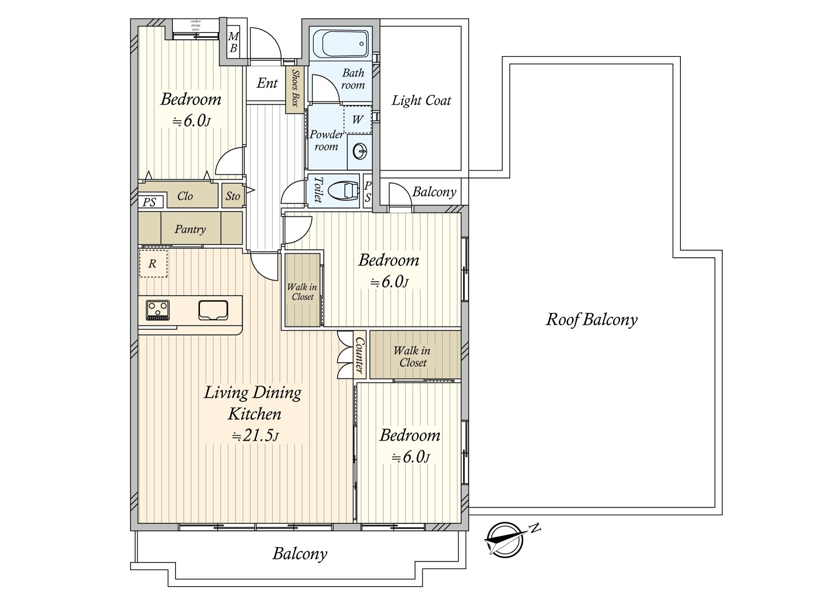 ○ The corner unit, Southeast side terrace, Northeast side roof balcony