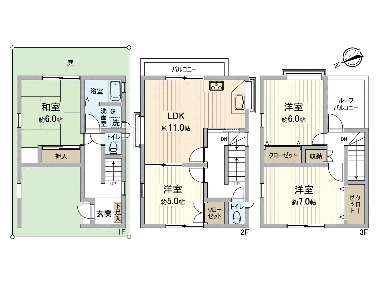 ○ 3-story 4LDK of 100.60 square meters of total floor area