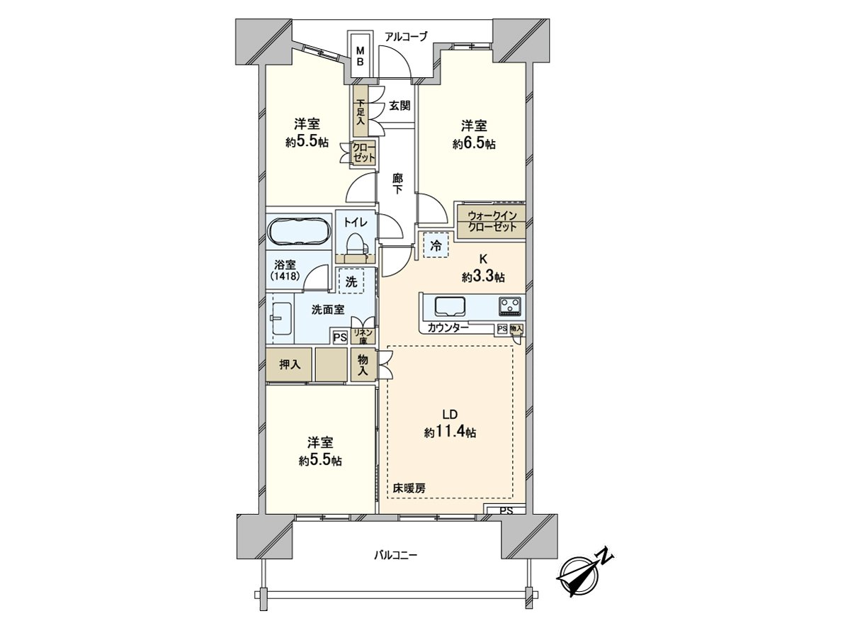 Place equipped with a water supply (kitchen) (March, 2022) plan Interior (each room cross, downlight setting (living)) (March, 2022) plan