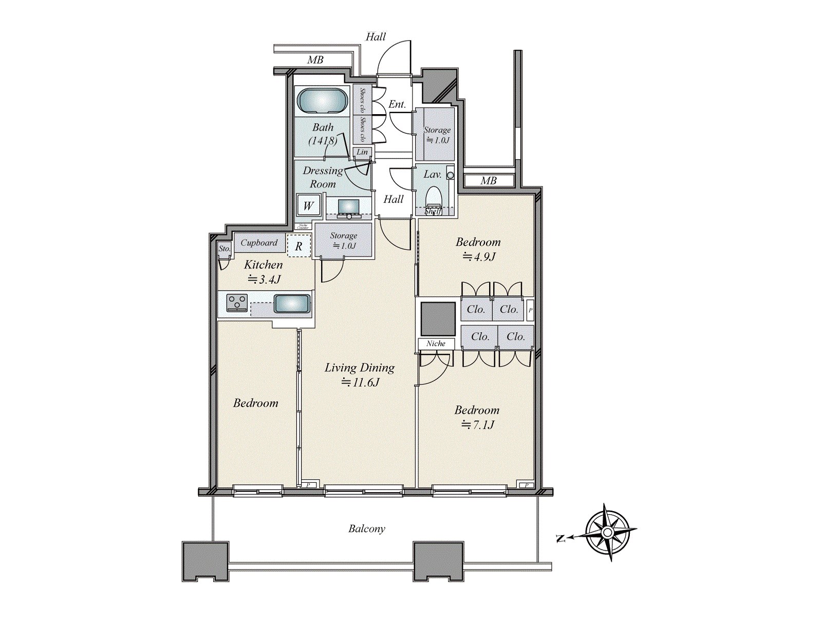 * 75.74 square meters/3LDK, beautiful Plan of the living in