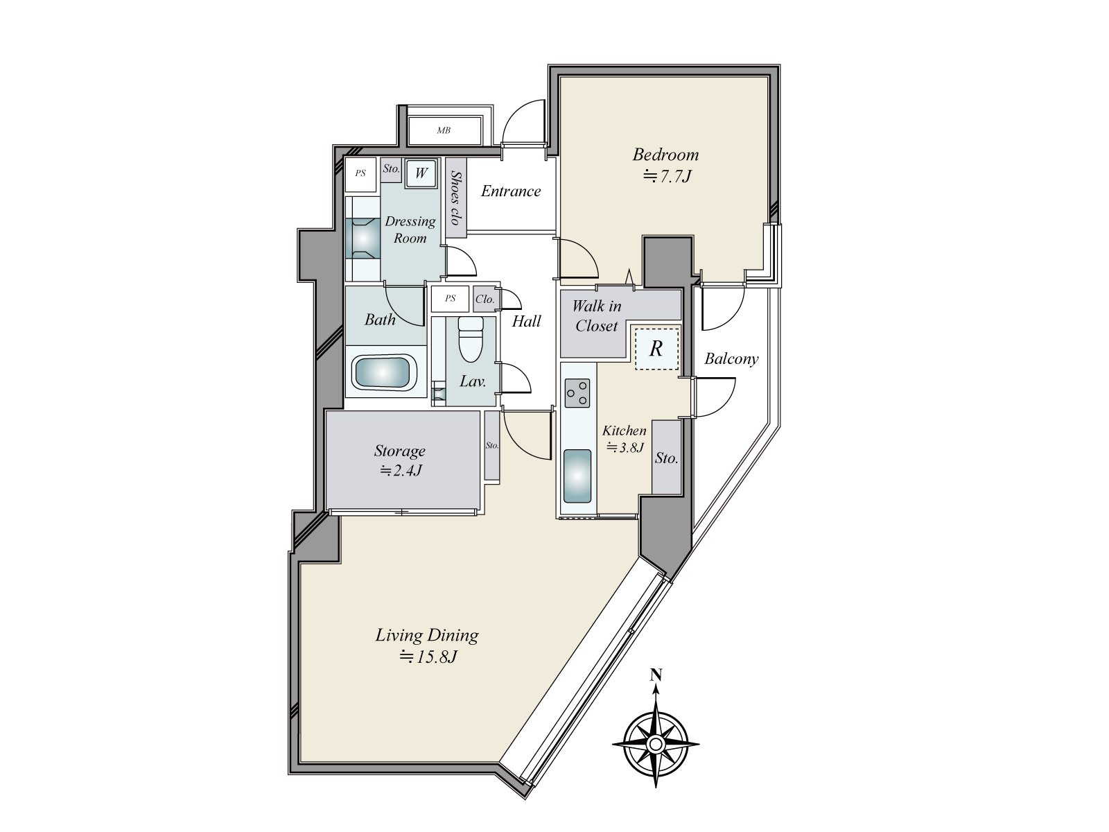 ・66.95 square meters of /1SLDK+WIC/ Southeast Orientation corner unit