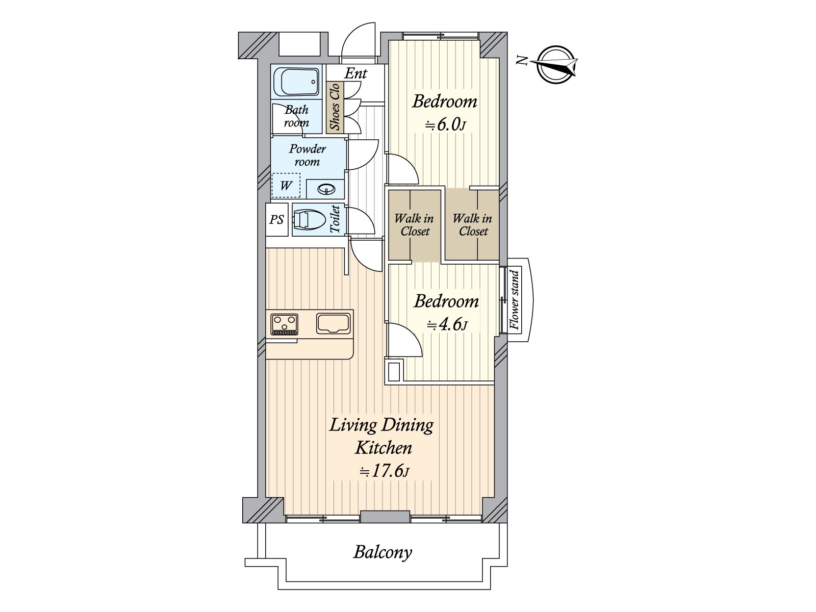 ・Exclusive area: 66.36 square meters of Plan: 2LDK