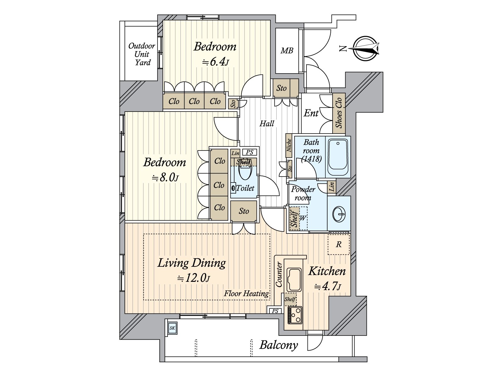 ○ Exclusive area: 75.00 square meters of Plan: 2LDK