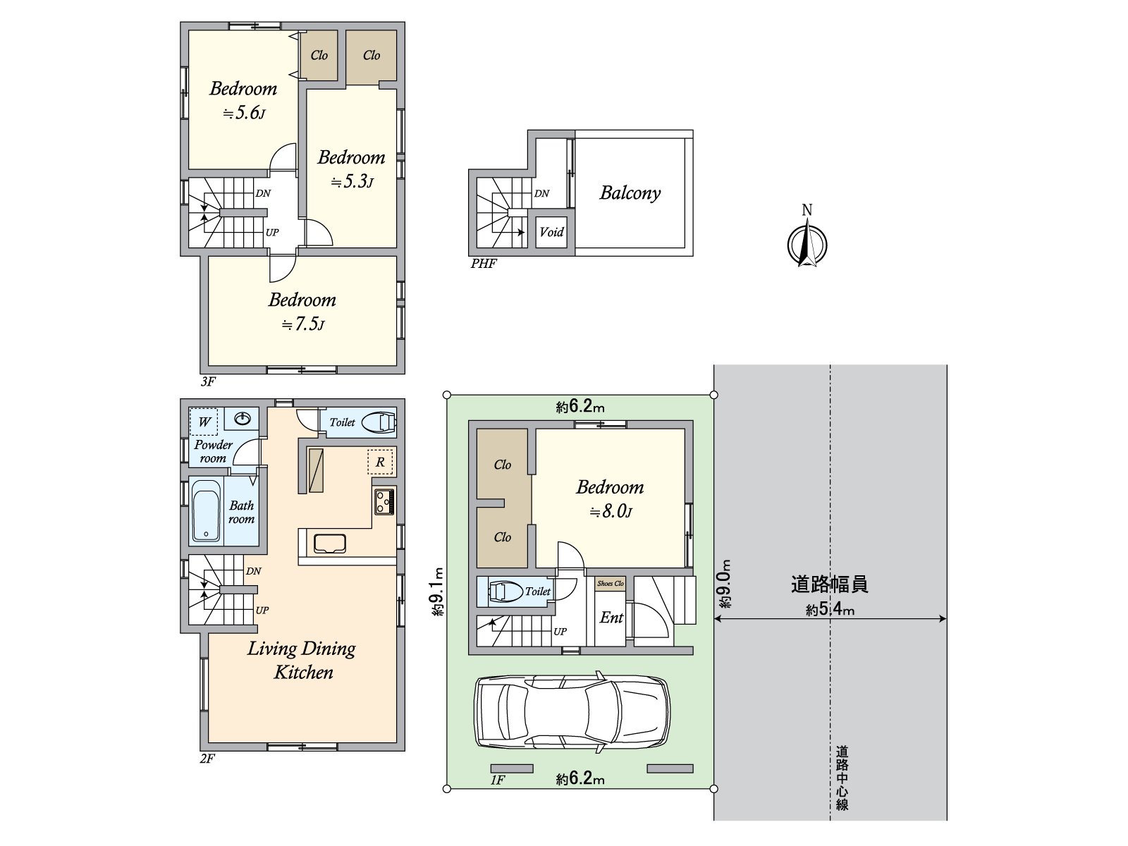 ○ Front road width: East side about 5.4m