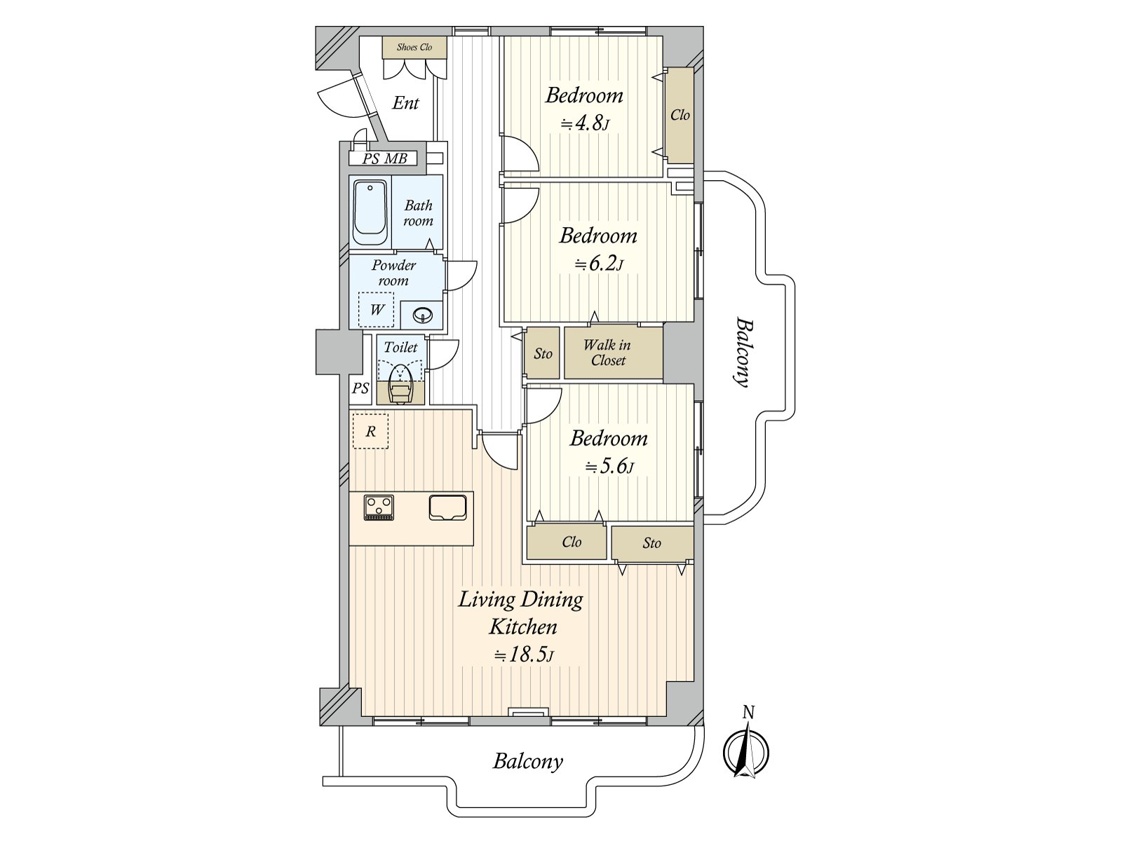 ・About 18.5 quires of LDK is faced with southern aspect terrace, and they are extensive brightly