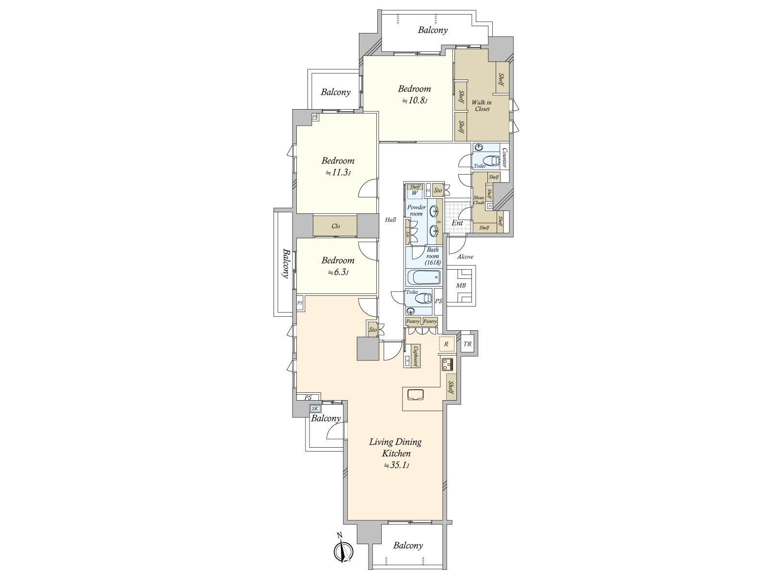 ○ 3LDK of exclusive area 161 square meters