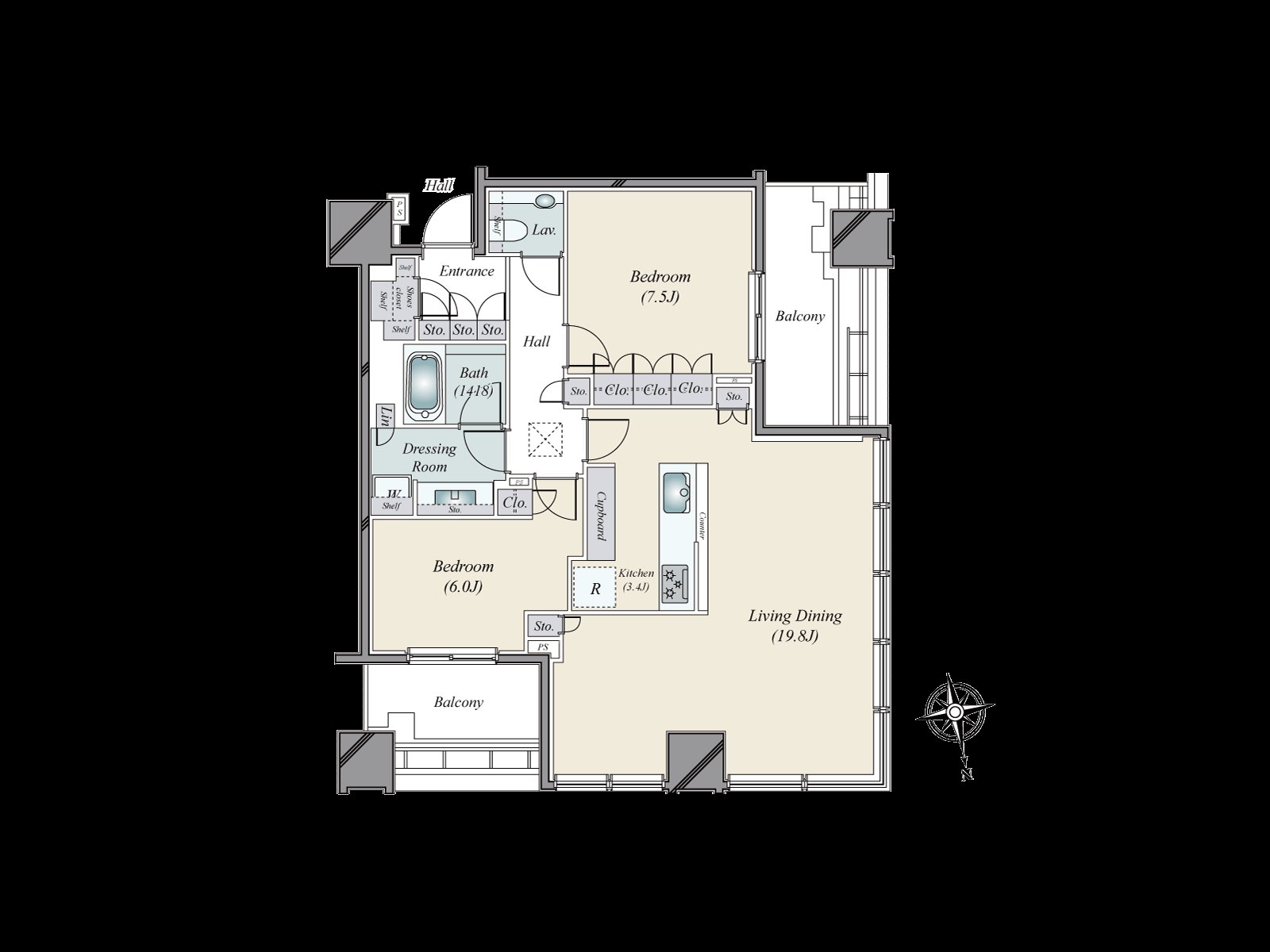○ 81.98 square meters of exclusive area, 2LDK