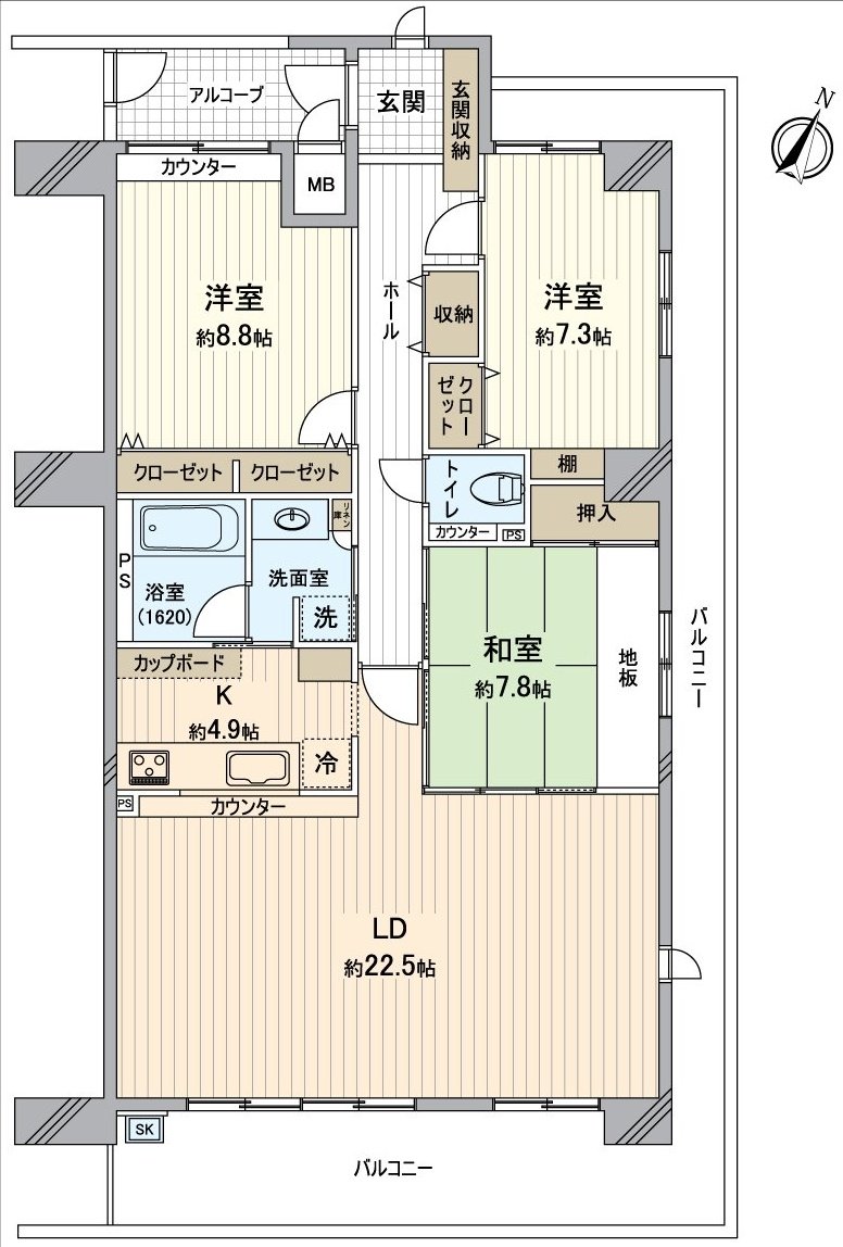 The corner sentence condominium of the 2000 December house. 114.42 square meters of exclusive area. It is a certain space 3LDK southeast corner unit. Please contact a person in charge for the details casually.