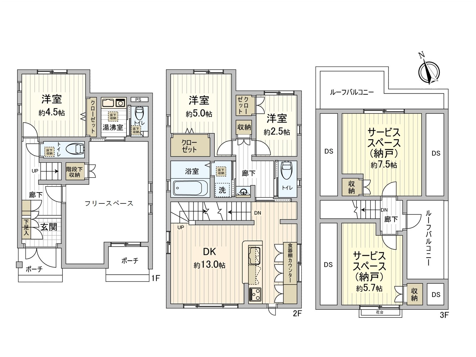 The appearance It is photographed by the north side road. The parking space for two is in the site, and the life line of flow is secured, too.
