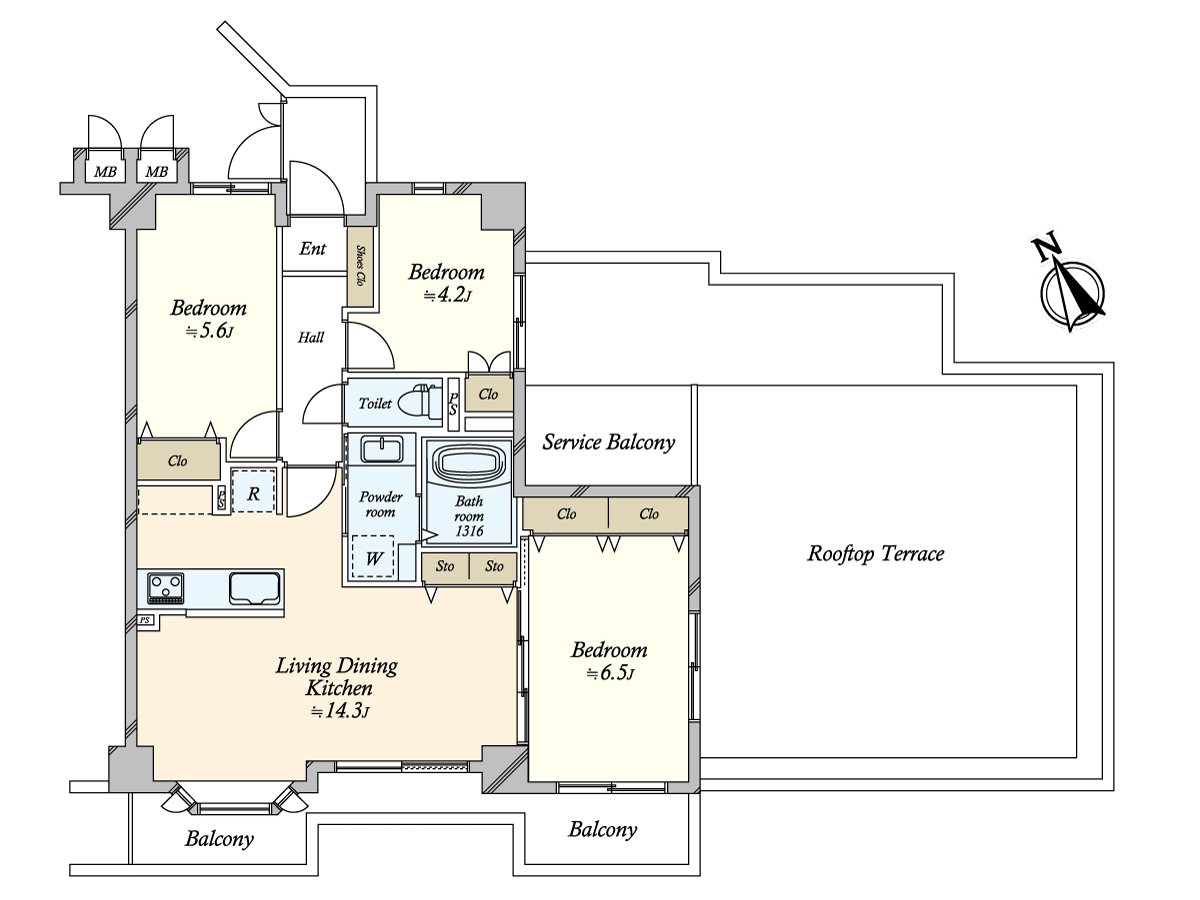 ・It is the satisfying storage space such as closets in storing, all rooms in living and dining room
