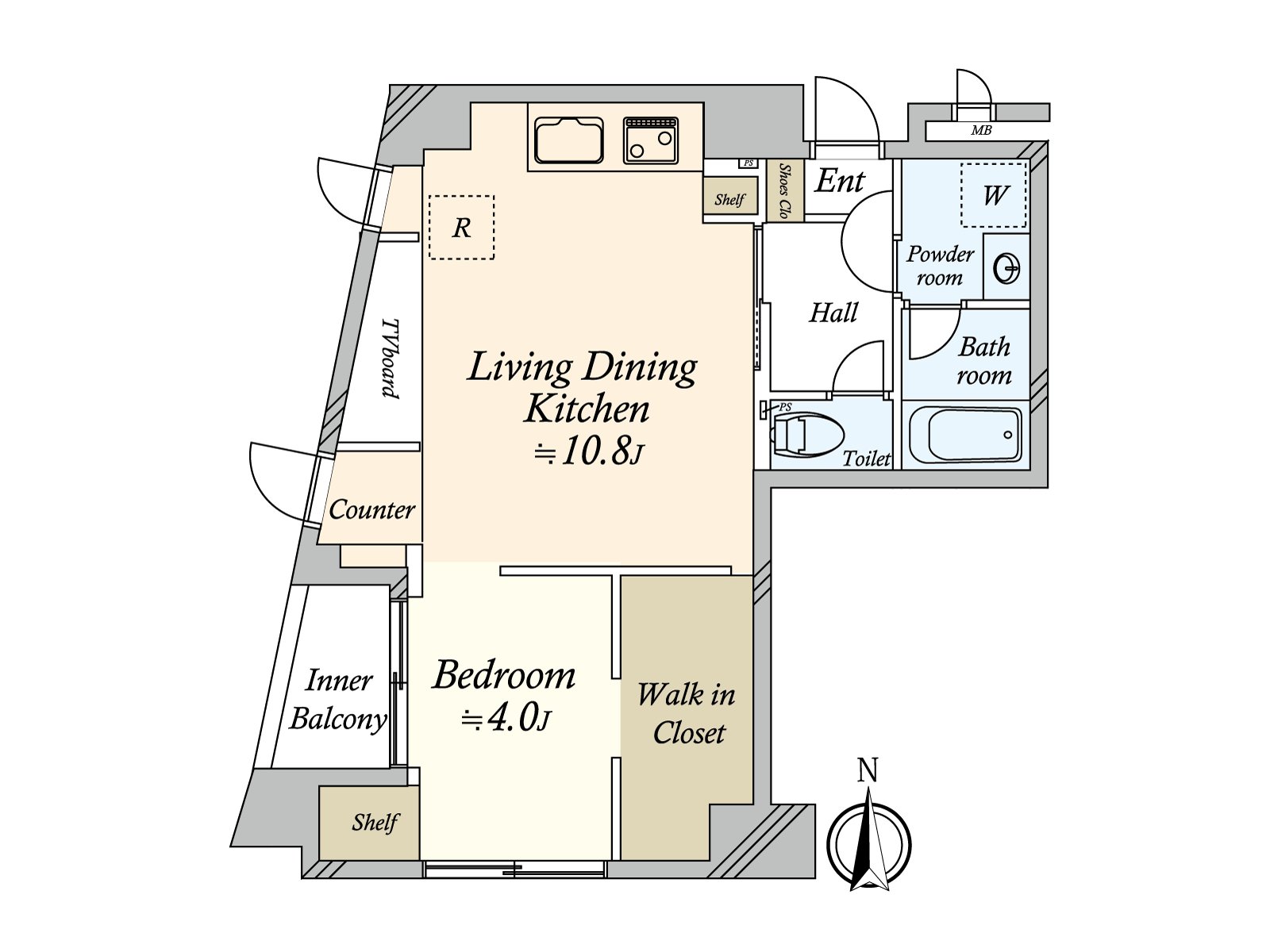 * 41.12 square meters of exclusive area, Layout of 1LDK