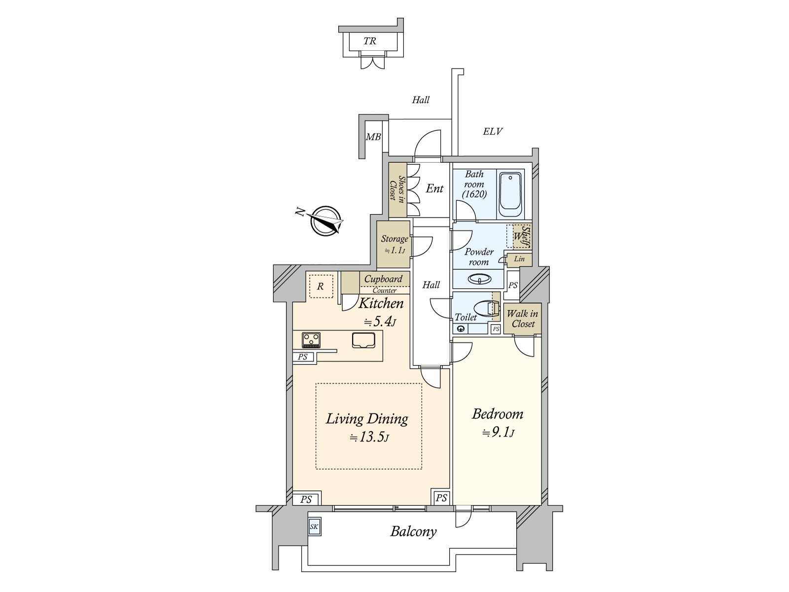 * 71.84 square meters of exclusive area, Layout of 1SLDK
