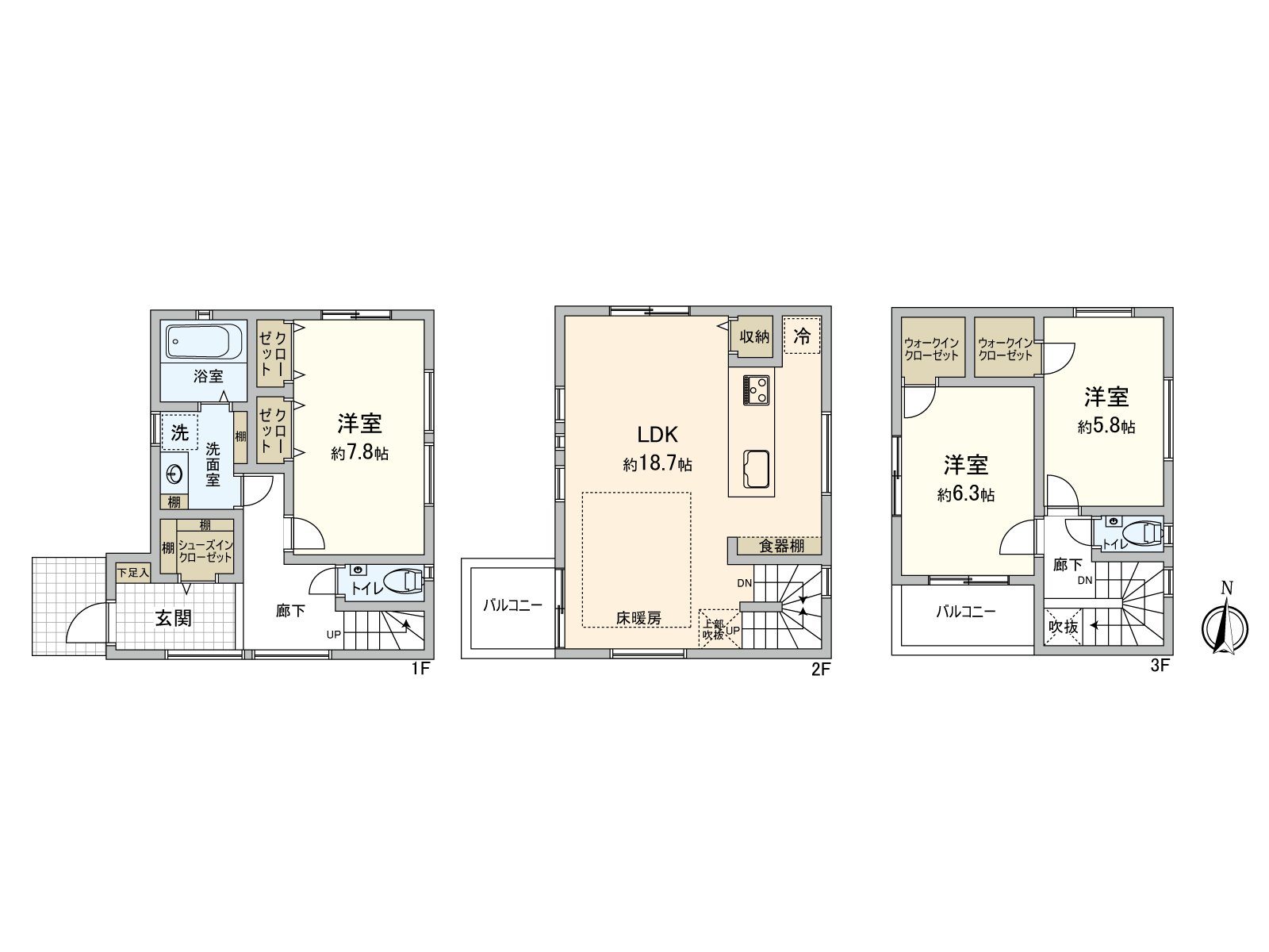 ・ As two places of walk-in closet shoe closet is rich in a quantity of storing, I can utilize a residential space of the each room effectively