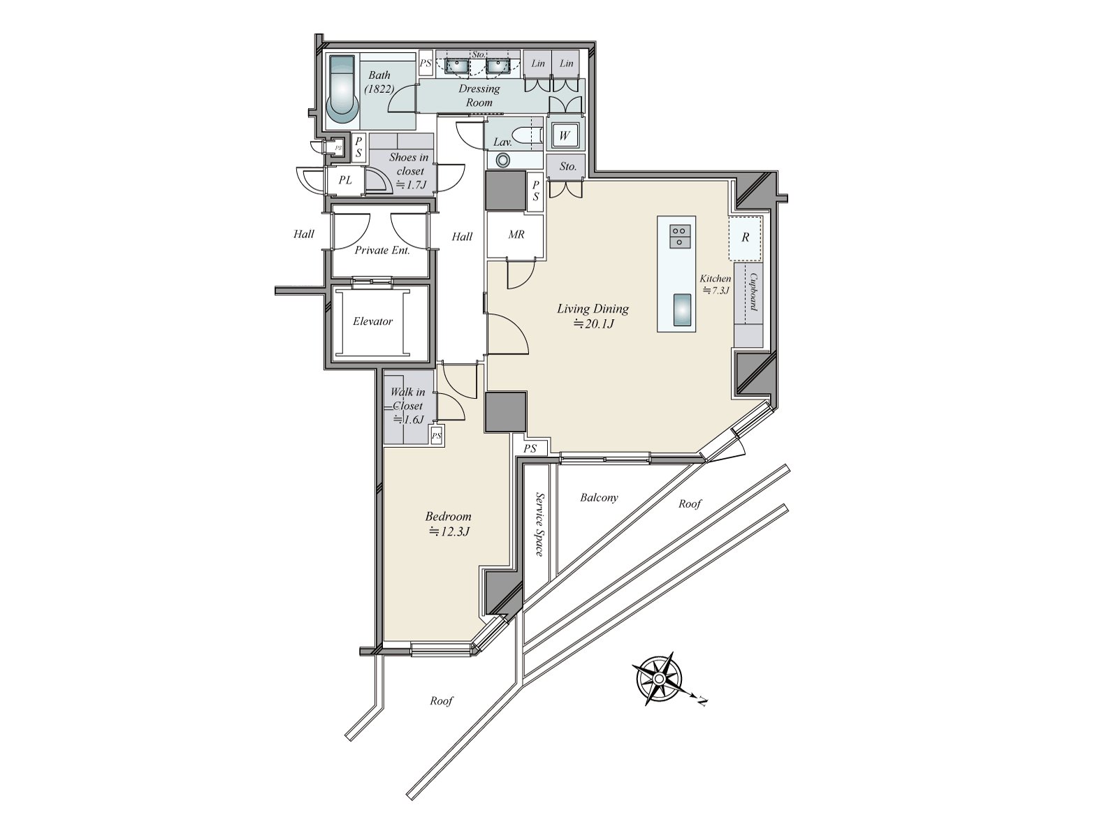 ■98.59 square meters of exclusive area, Plan of 1LDK