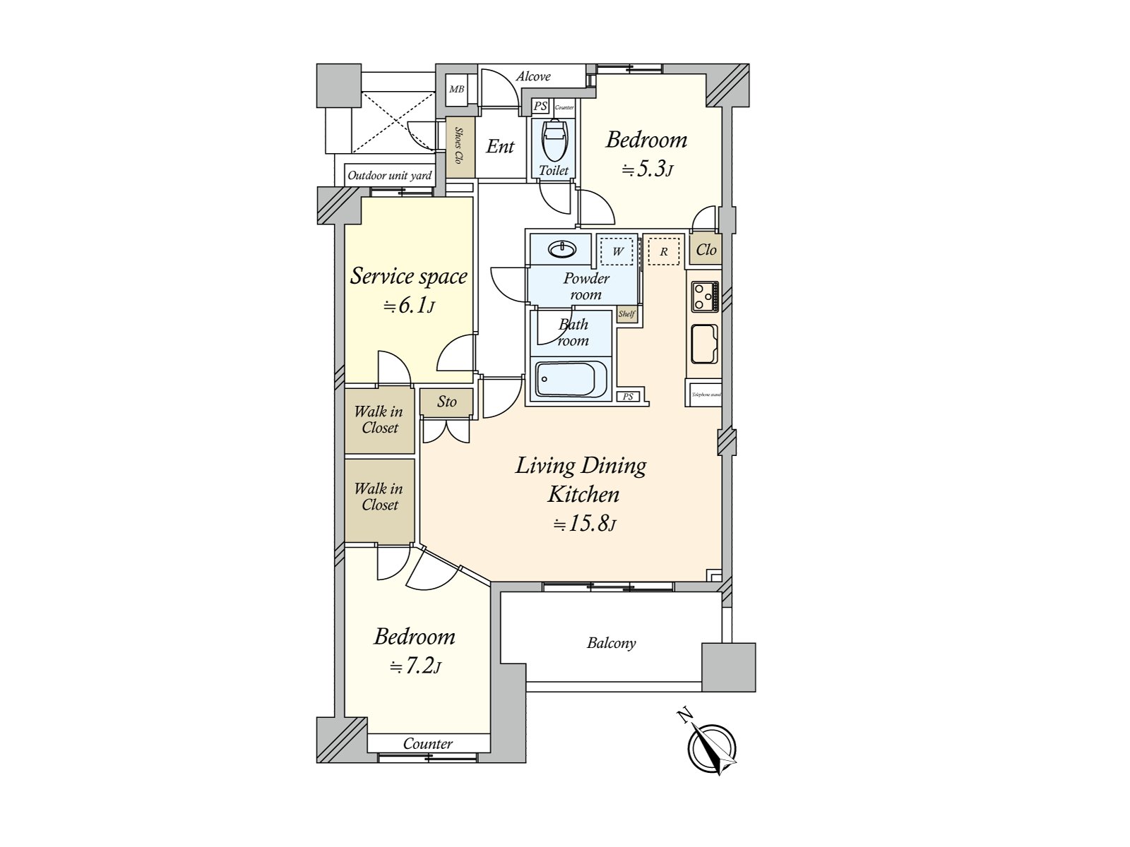 ・About 7.2 tatami, about 5.3 quires of Western-style rooms