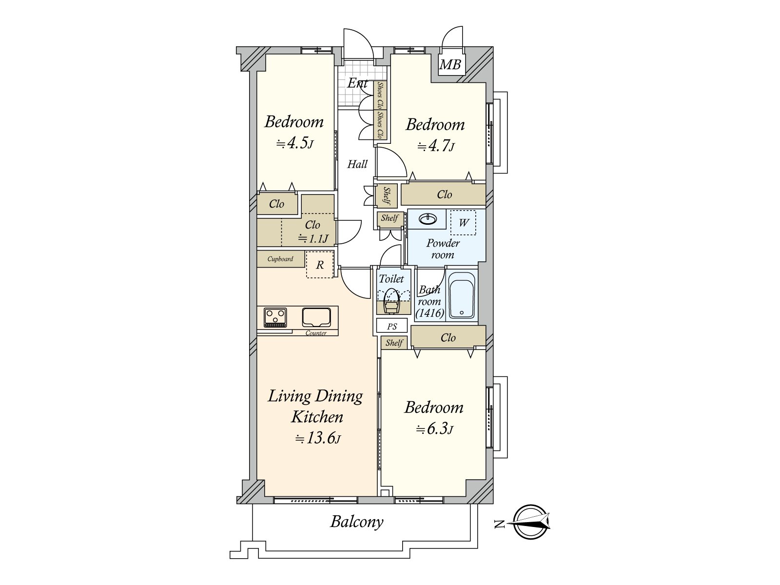 ・About 6.3 tatami, about 4.7 tatami, about 4.5 quires of Western-style rooms