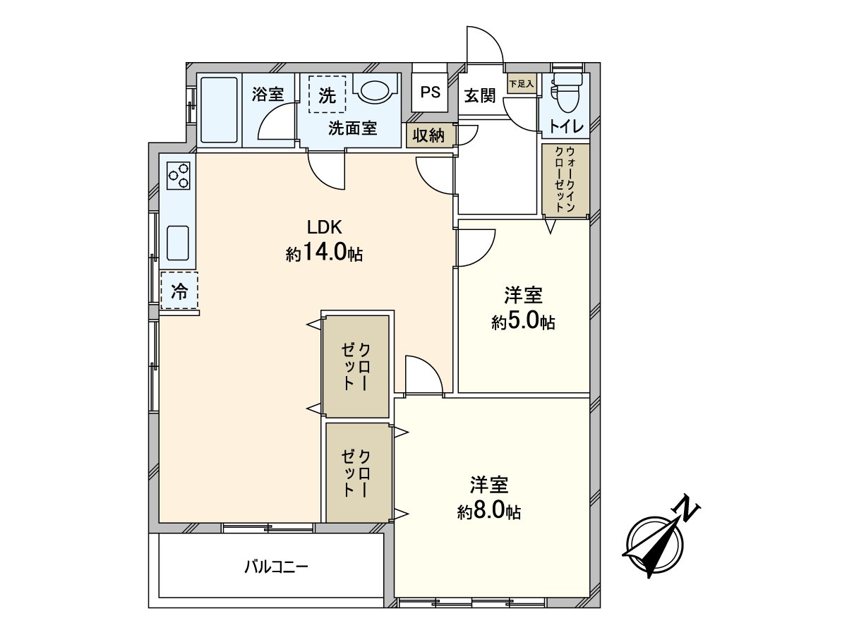 ・2LDK type of exclusive area 58.68 square meters (inside dimensions)