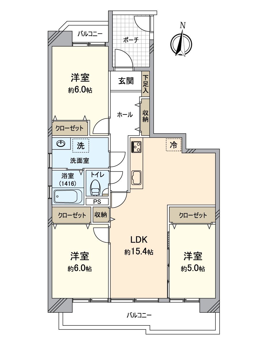 * 3LDK of exclusive area about 77.5 square meters