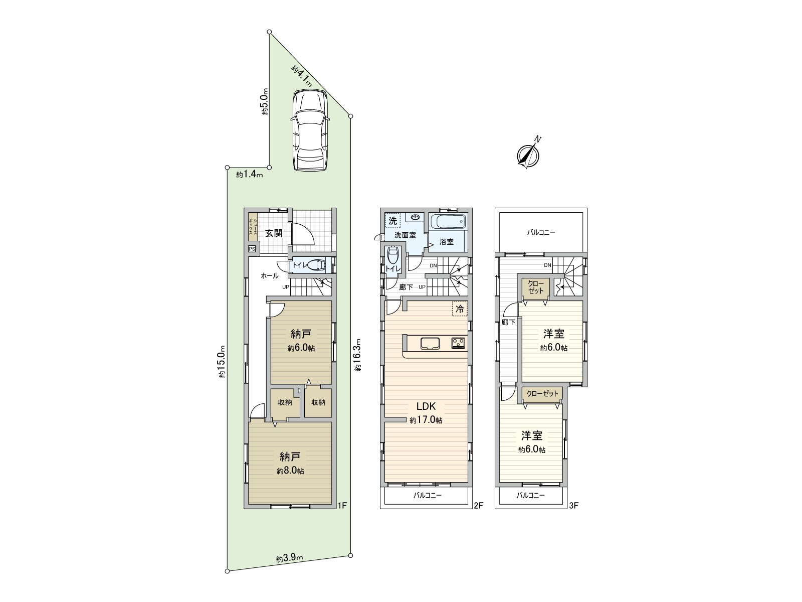 ○ 3 stories of total floor area 111.37 square meters (about 33 tsubos)