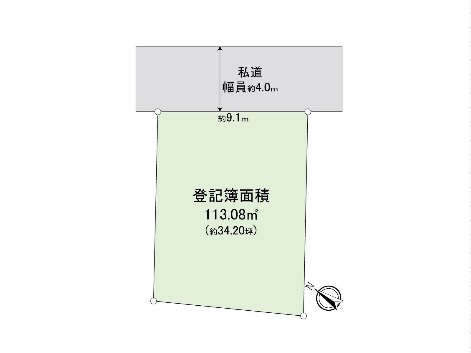○ Rectangular lot of about 113 square meters of plottage (about 34.2 tsubo)