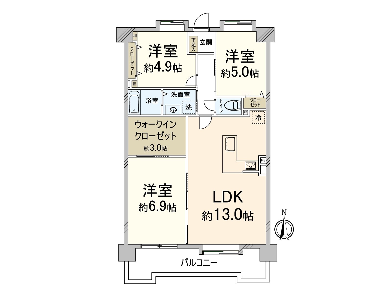 * 3LDK of 75.97 square meters of exclusive area
