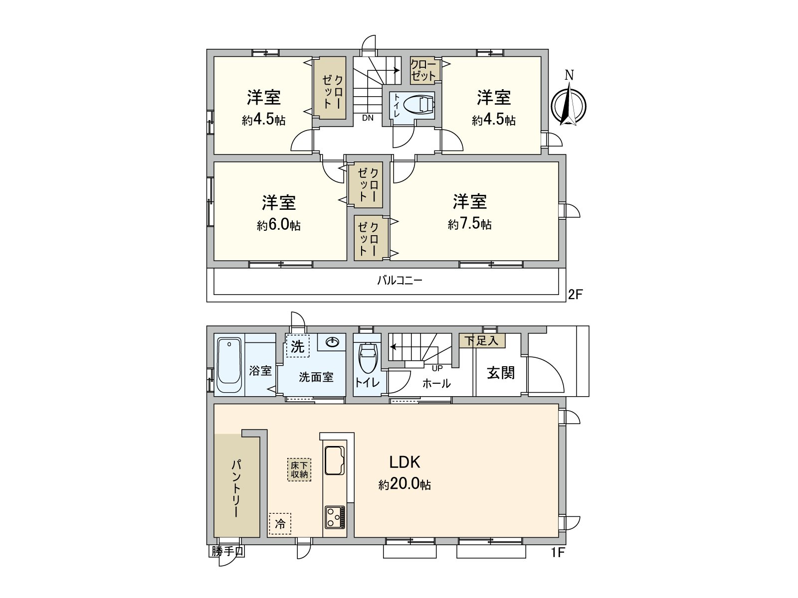 ・4LDK Newly-Built house storing-rich with Wood 2-story bldg., floor lower storing