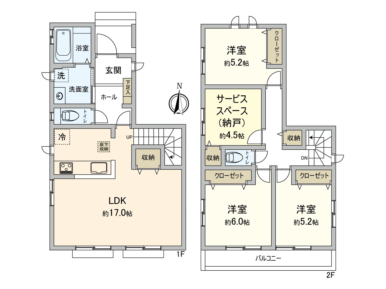 ・3LDK+S Newly-Built house storing-rich with Wood 2-story bldg., floor lower storing